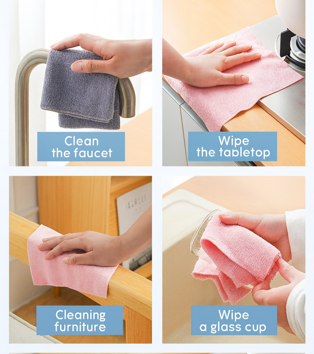No lint and no scratching. Microfiber lifts dirt and grease cleanly, making it safe for countertops, glass, and nonstick cookware.